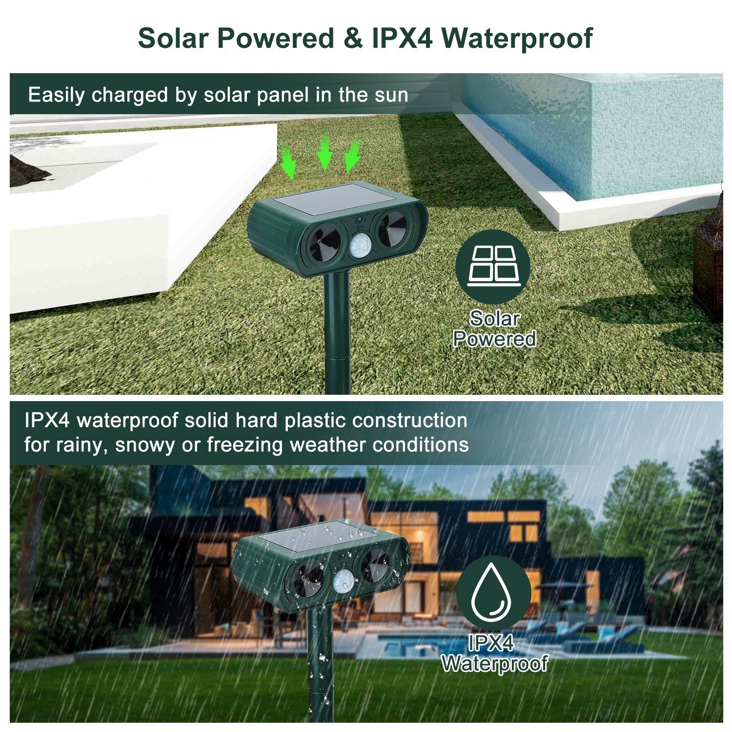 Home > Ultrasonic Animal Repeller Solar Powered Motion Sensor Repellent IPX4 Waterproof Outdoor For Farm Garden Yard Repelling Deer Raccoon Cat Dog Rabbit Sq